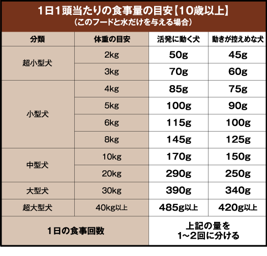 ・10歳以上の犬向けに設計しております。成犬用総合栄養食ですので1歳以上の犬に与えても問題ありませんが、長期給与は年齢に合ったフードをおすすめします。