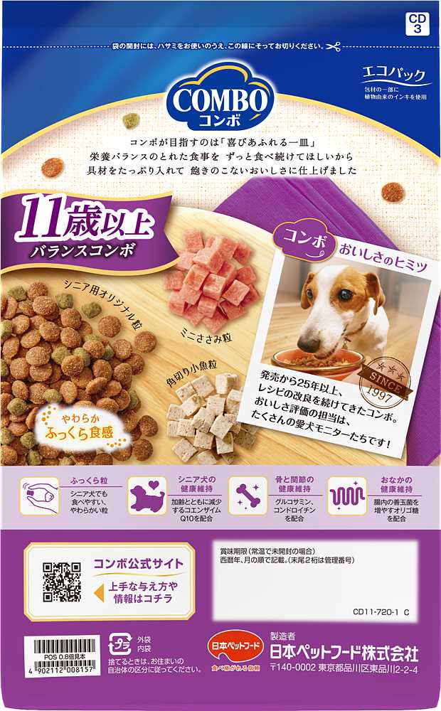 シニア犬のためのふっくら食感粒。角切りささみ粒も小さくて食べやすい。