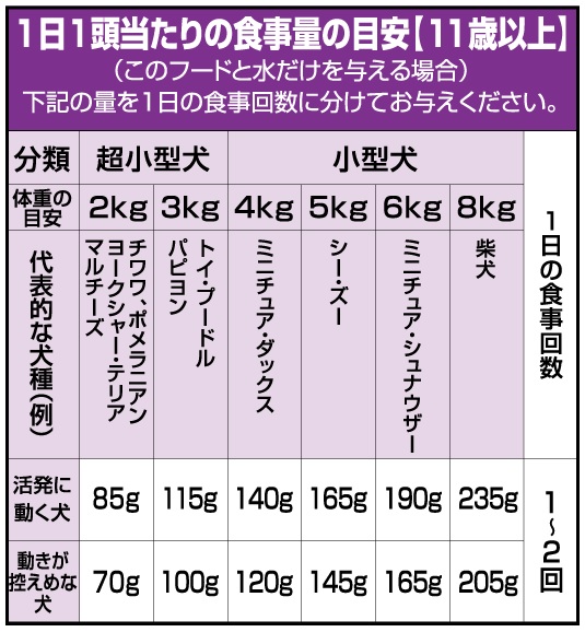 ※食事量は目安です。ペットの体重や体型を見ながら量を調整してください