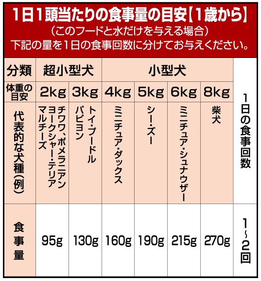 ※食事量は目安です。ペットの体重や体型を見ながら量を調整してください