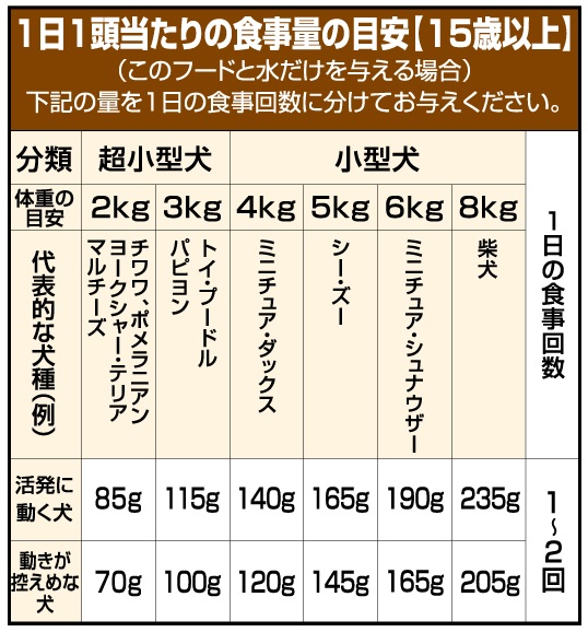 ※食事量は目安です。ペットの体重や体型を見ながら量を調整してください