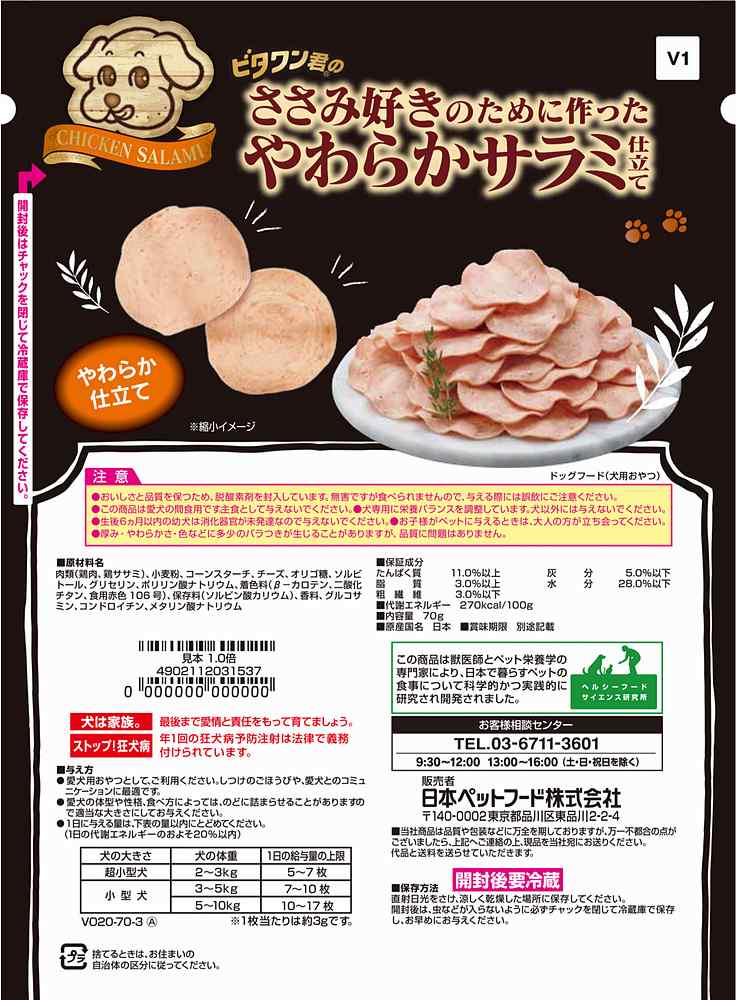 ビタワン君のおやつビタワン君のささみ好きのために作ったやわらかサラミ仕立て70g