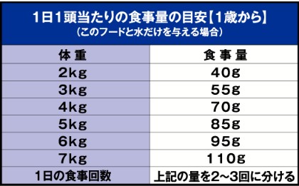 ・少しずつ何回も食べる習慣に合わせて、1日量を分けてお与えください。