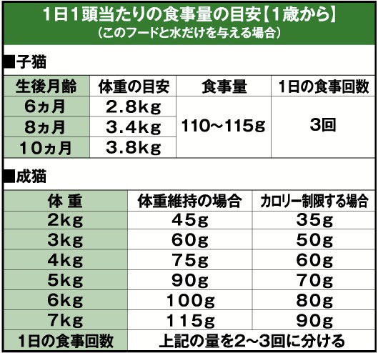 ・少しずつ何回も食べる習慣に合わせて、1日量を分けてお与えください。