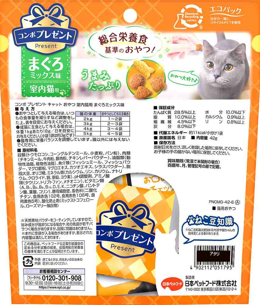 コンボプレゼントキャットおやつ室内猫用まぐろミックス味42g