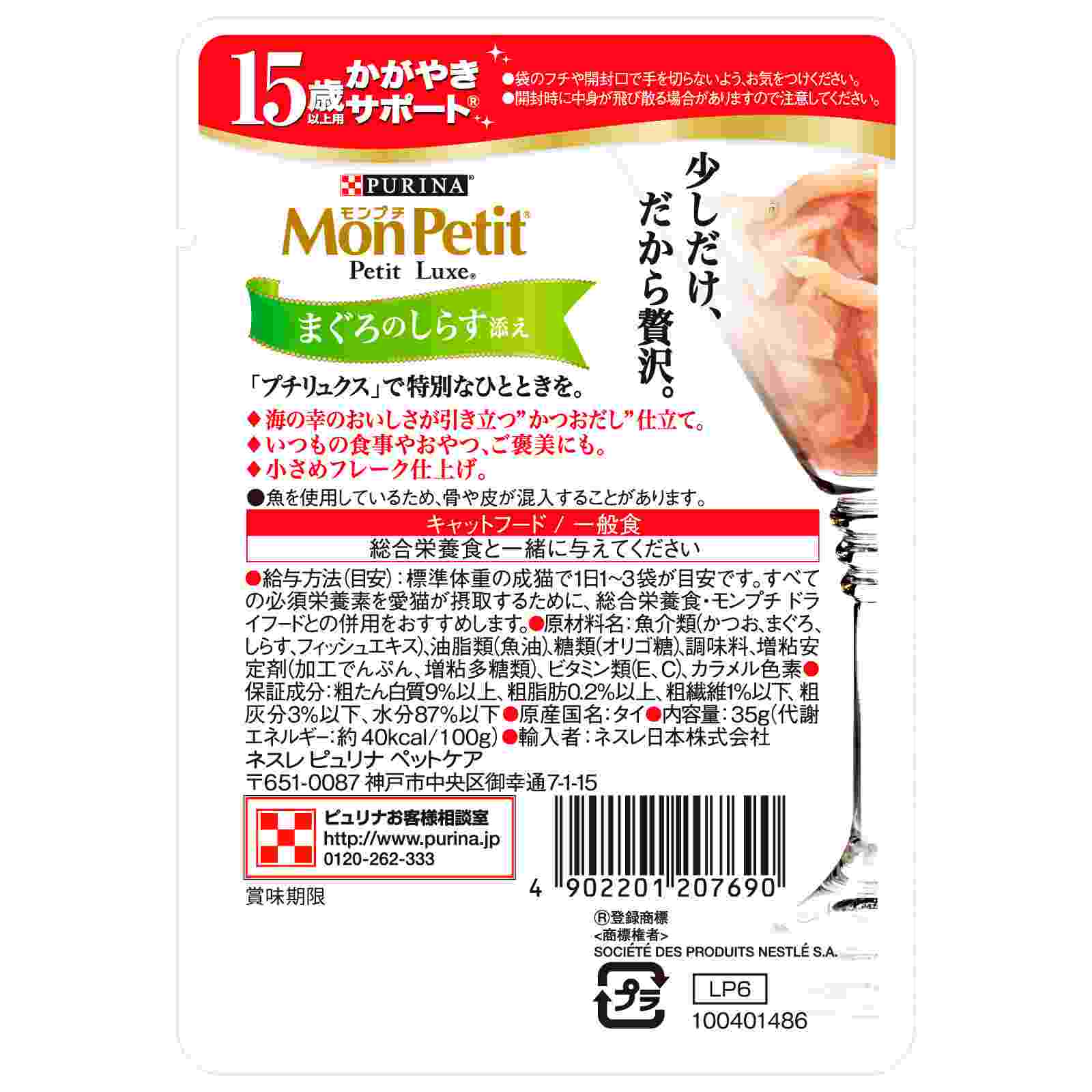 モンプチ プチリュクスパウチ 15歳以上用 かがやきサポート まぐろのしらす添え かつおだし仕立て 35g