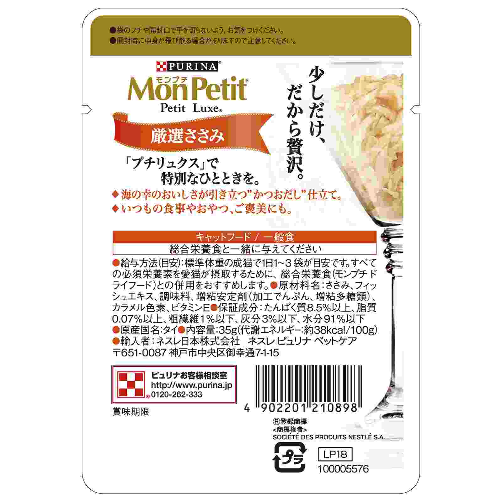 モンプチ プチリュクスパウチ 厳選ささみ 35g
