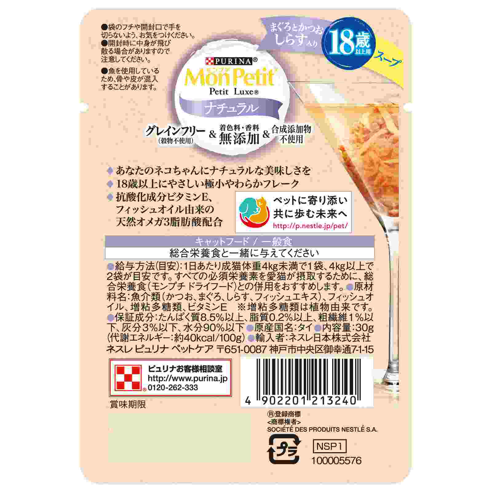 モンプチ プチリュクスパウチ ナチュラル スープ 18歳以上用 しらす入りまぐろとかつお 30g
