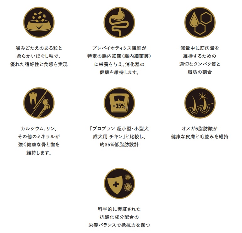 ・1カップ(200cc)は約72gです。 ・上記の量を2回に分けて与えてください。 ・給与量は成犬の平均的な栄養要求を基に作られています。 ・適切な体型を維持するために必要な量は、代謝量、犬種、体重、運動量、年齢や避妊・去勢の有無などによって異なります。 ・ピュリナの専門家は給与量を目安として提供しています。表の給与量で犬の体重が減少したり、増えすぎたりした場合は量を調節してください。 ・毎日清潔な容器に新鮮な飲み水を与えましょう。 <フードの切り替え方> 7~10日かけて現在与えている食事の量を少しずつ減らし、本製品の量を少しずつ増やしてください。 徐々に切り替えることで、お腹への負担を軽減します。