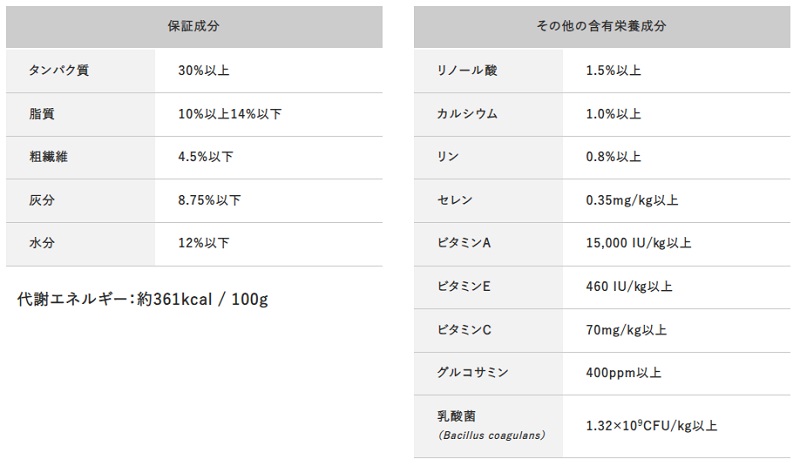 また、AAFCO(米国飼料検査官協会)の栄養基準を満たしています。