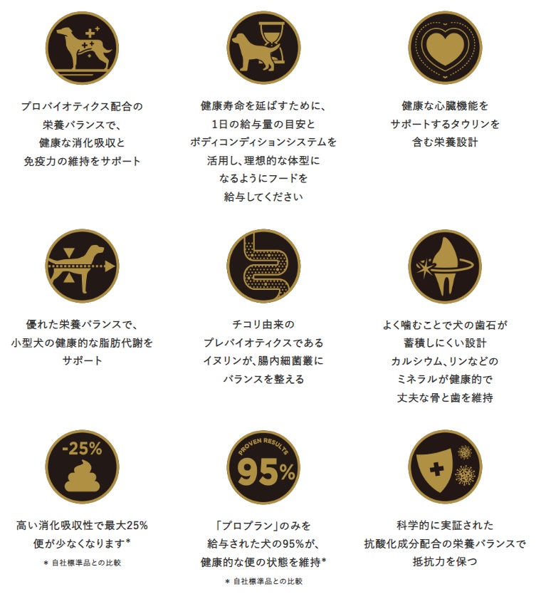 ・1カップ(200cc)は約85gです。 ・上記の量を2回に分けて与えてください。 ・給与量は成犬の平均的な栄養要求を基に作られています。 ・適切な体型を維持するために必要な量は、代謝量、犬種、体重、運動量、年齢や避妊・去勢の有無などによって異なります。 ・ピュリナの専門家は給与量を目安として提供しています。表の給与量で犬の体重が減少したり、増えすぎたりした場合は量を調節してください。 ・毎日清潔な容器に新鮮な飲み水を与えましょう。 <フードの切り替え方> 7~10日かけて現在与えている食事の量を少しずつ減らし、本製品の量を少しずつ増やしてください。 徐々に切り替えることで、お腹への負担を軽減します。