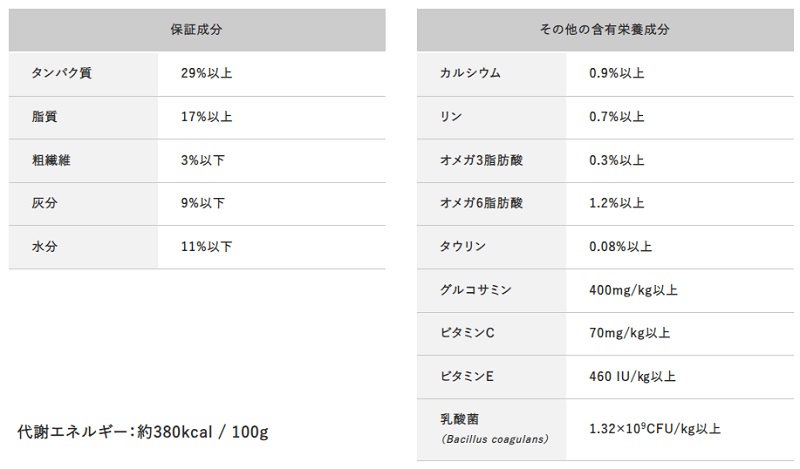 また、AAFCO(米国飼料検査官協会)の栄養基準を満たしています。
