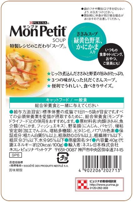 モンプチ スープ ささみスープ 緑黄色野菜、かにかま入り 40g
