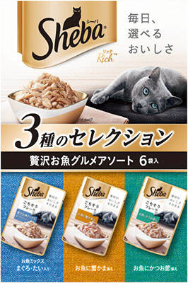 【お魚ミックス まぐろ・たい入り】魚類(かつお、白身魚、たい、まぐろエキス等)、かつお節、増粘多糖類、調味料(アミノ酸等)【お魚に蟹かま添え】魚類(かつお等)、蟹かま、かつお節、増粘多糖類、調味料(アミノ酸等)、トマト色素【お魚にかつお節添え】魚類(かつお等)、かつお節、増粘多糖類、調味料(アミノ酸等)