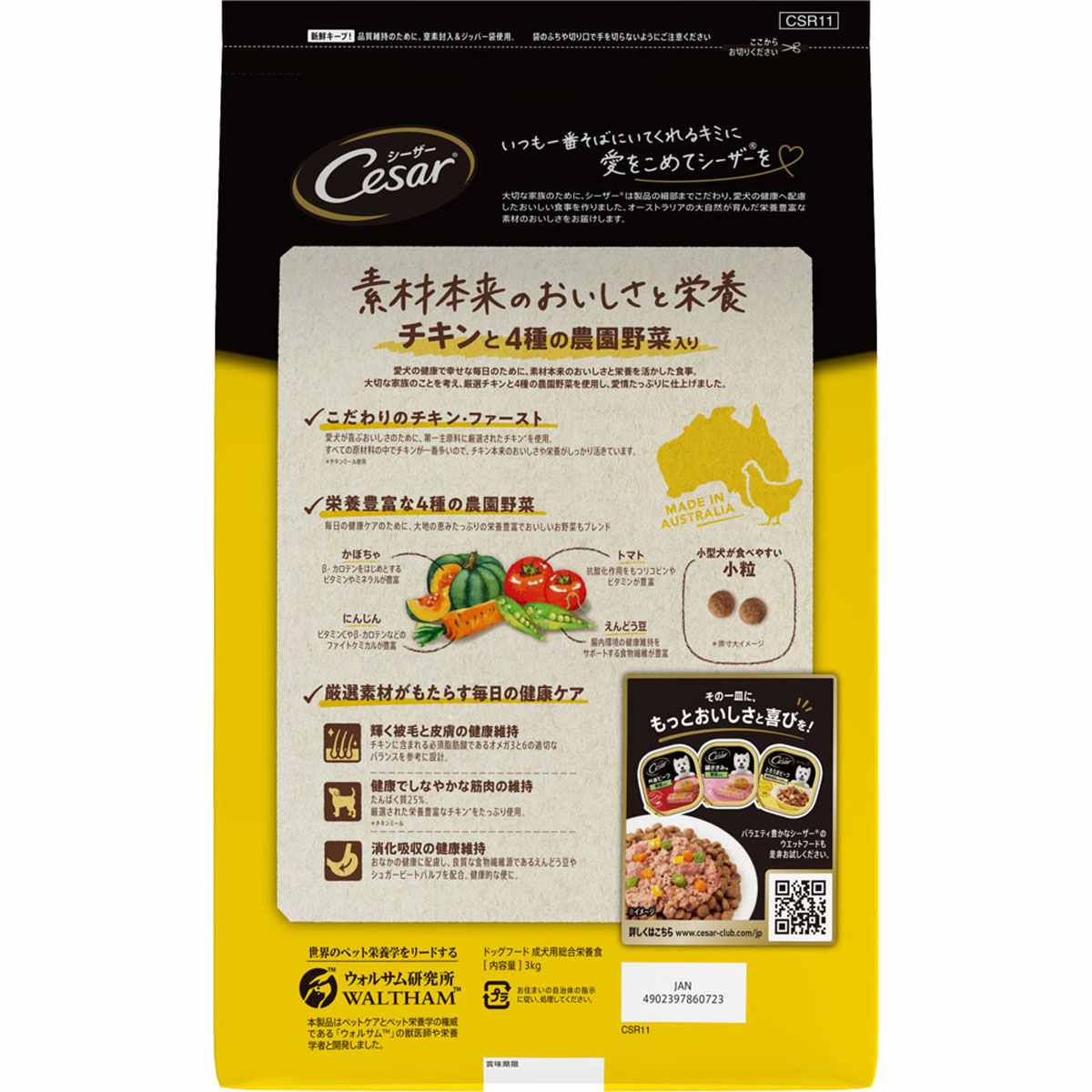 シーザードライ 成犬用 チキンと4種の農園野菜入り 小粒 3kg