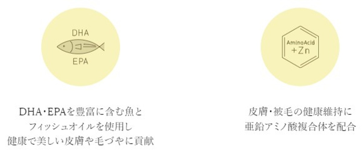 DHA・EPAが豊富な魚とフィッシュオイルを使用し、下部尿路の健康維持に配慮。