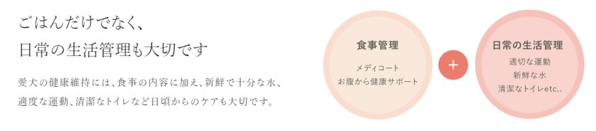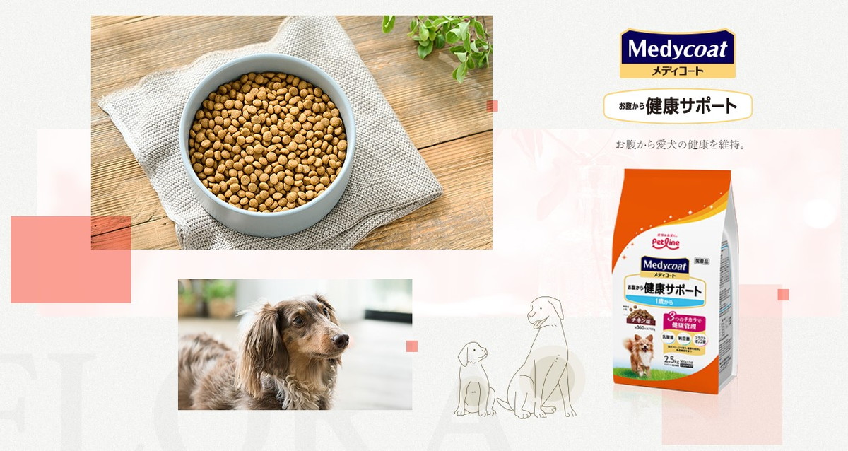 「いつもの食事も、愛犬の健康を考えて選びたい」 メディコートシリーズは、その想いに応える デイリーフードです。