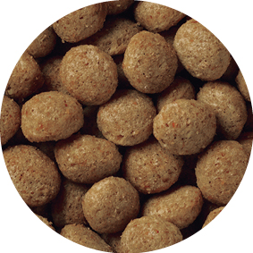 ドライフードは、原材料の混合→原材料の粉砕 →エクストルーダーによる加工→乾燥→油脂やエキス類のコーティング→梱包という工程を経て出荷されます。