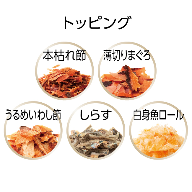 ■こだわりのトッピングを採用 ◇本枯れ節・薄切りまぐろ・うるめいわし節・しらす・白身魚ロール