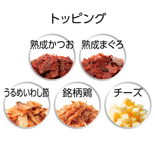 ■こだわりのトッピングを採用 ◇熟成かつお・熟成まぐろ・うるめいわし節・銘柄鶏・チーズ