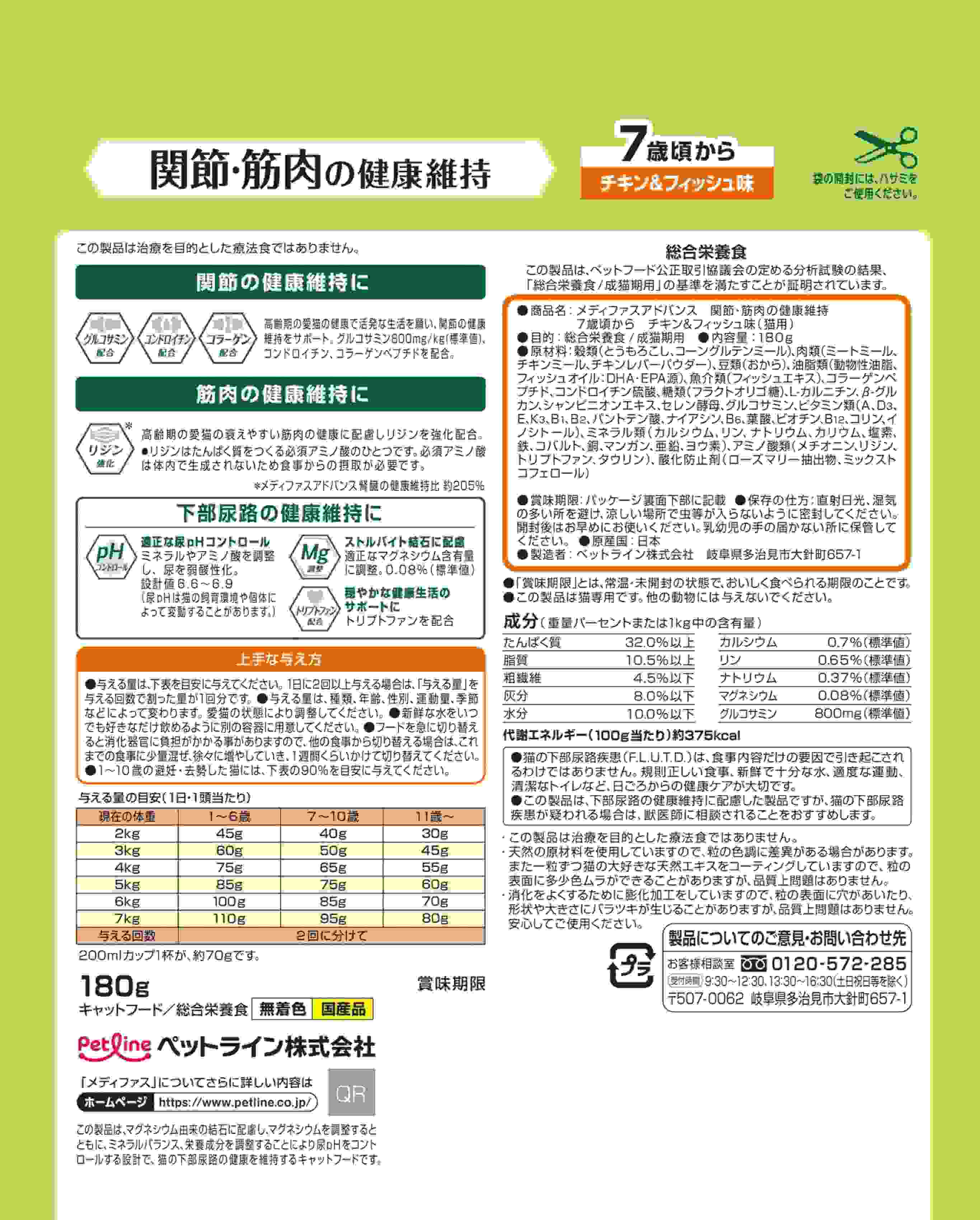 メディファスアドバンス 関節・筋肉の健康維持 7歳頃から チキン&フィッシュ味 180g