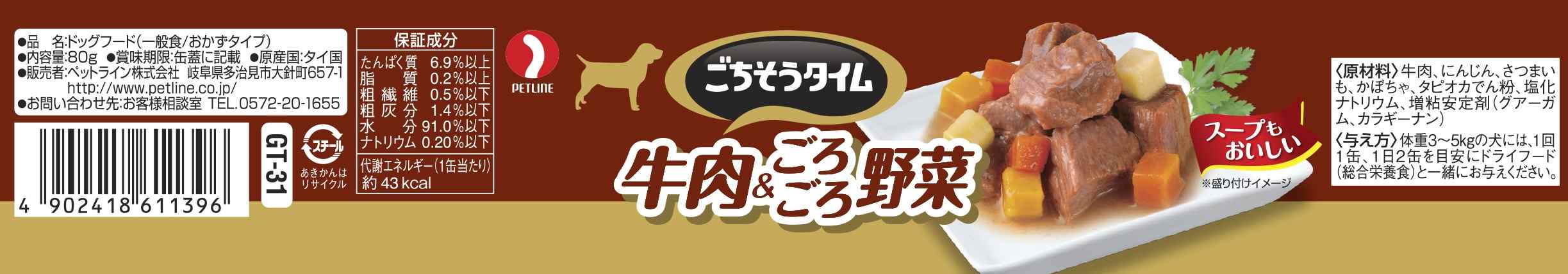 牛肉、にんじん、さつまいも、かぼちゃ、タピオカでん粉、塩化ナトリウム、増粘安定剤(グアーガム、カラギーナン)