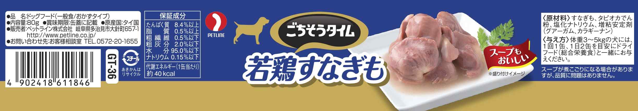 たんぱく質・・・8.4%以上、脂質・・・0.5%以上、粗繊維・・・0.5%以下、粗灰分・・・2.0%以下、水分・・・95.0%以下、ナトリウム・・・0.15%以下、代謝エネルギー・・・約40kcal/缶