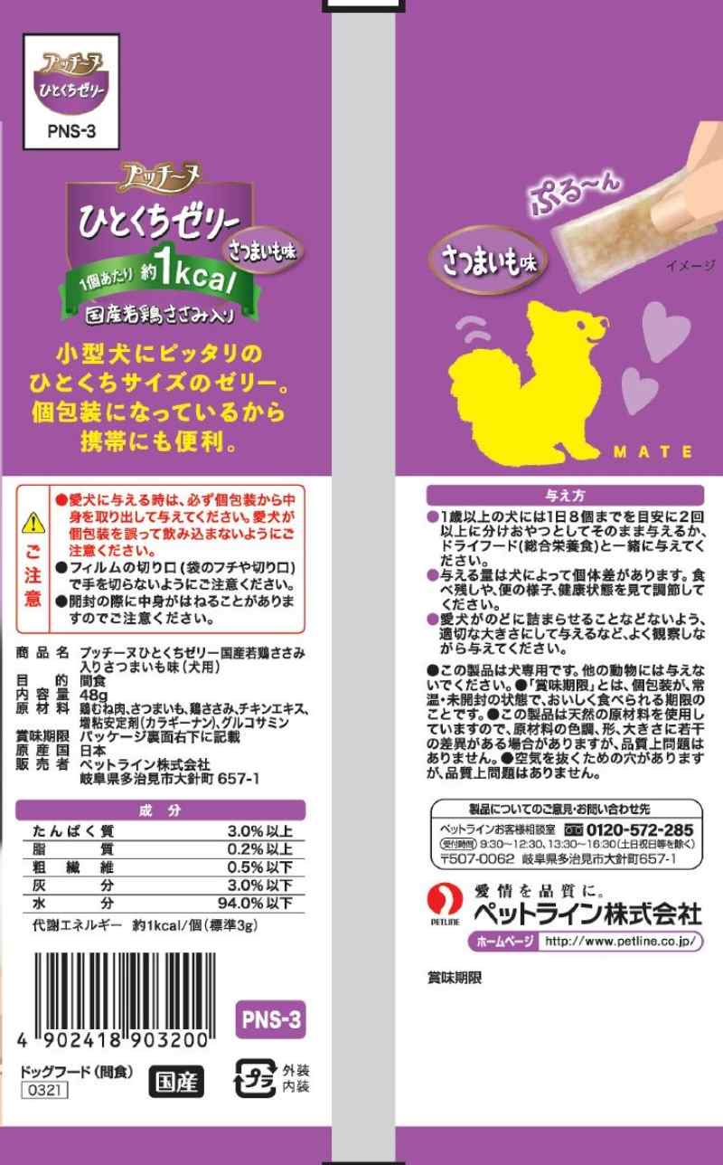 プッチーヌ ひとくちゼリー 国産若鶏ささみ入り さつまいも味 48g