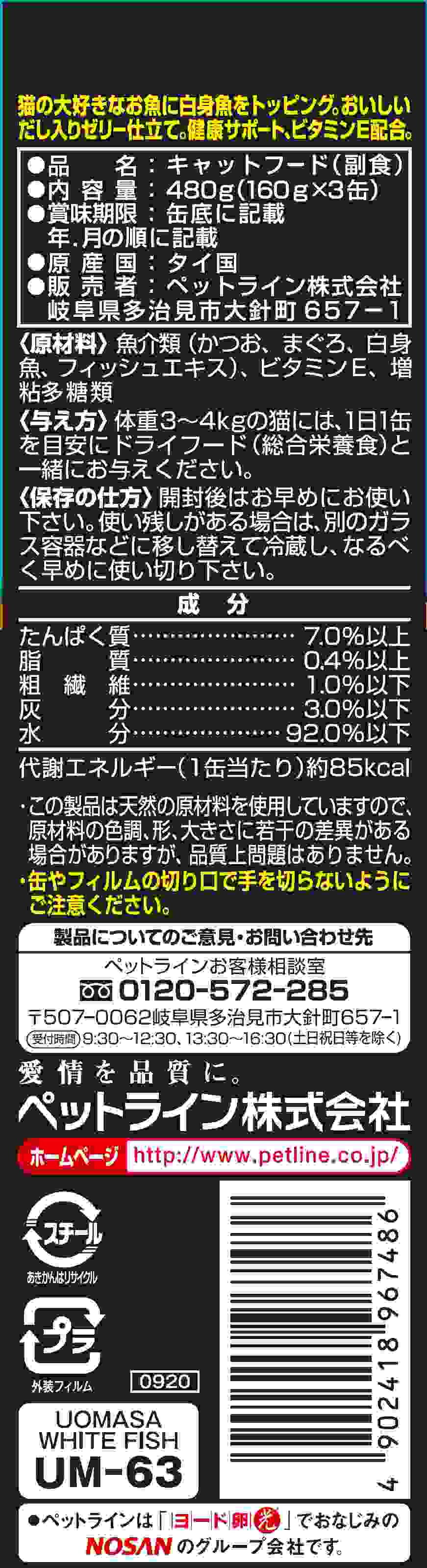 魚介類(かつお、まぐろ、白身魚、フィッシュエキス)、ビタミンE、増粘多糖類
