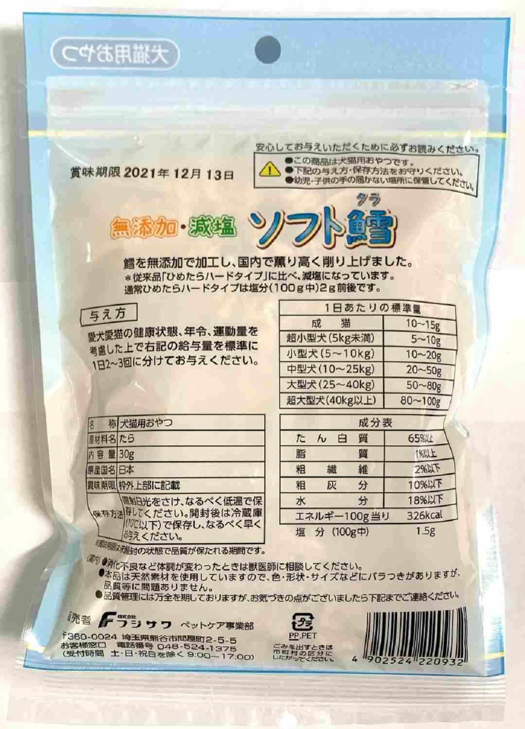 フジサワ 無添加 減塩ソフト鱈 30g