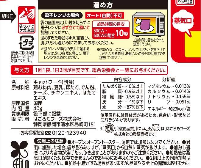 鶏むね肉、豆乳、ほたて、でん粉、チーズ、チキンエキス、ほたてエキス