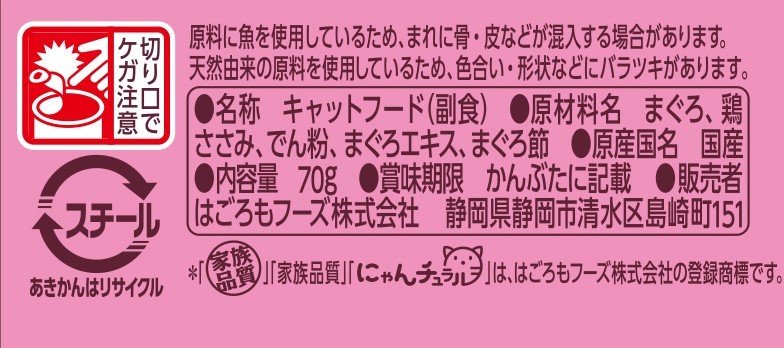 はごろもフーズ にゃんチュラル まぐろとささみ 70g
