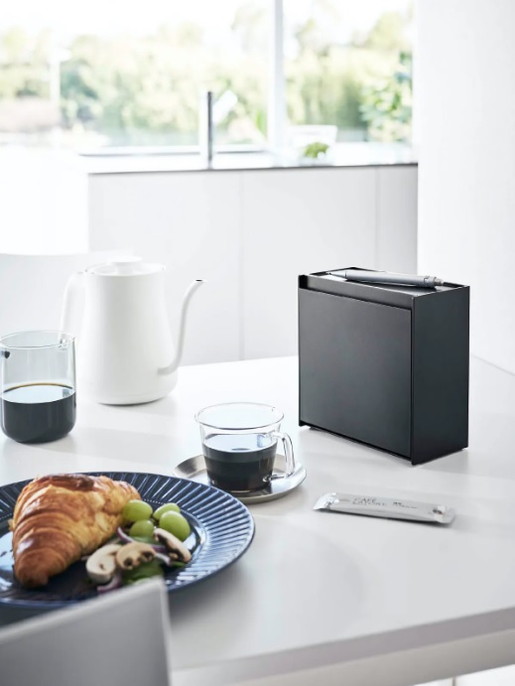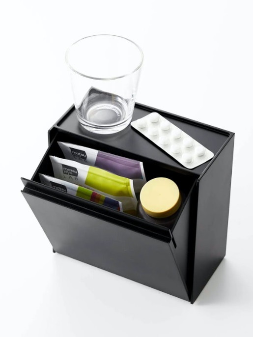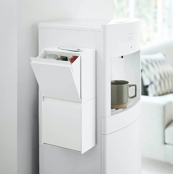 マグネットでウォーターサーバーや冷蔵庫横に簡単取り付け、置いても使えるインスタントスティック収納ホルダー!縦に並べて、上は収納、下はポリ袋を掛けてゴミ箱といった使い方もおすすめです。斜めに開口するフラップ式なので片手でサッと取り出すことができます!天板はトレーになっているので、コップの一時置きにも。薬やサプリメントの収納としても便利。オフィスやテーブルに置いても使用できます。底面にはシリコーンの滑り止め付き。仕切りが2枚付いているので、収納する物のサイズ・味・量に合わせて分別できます。