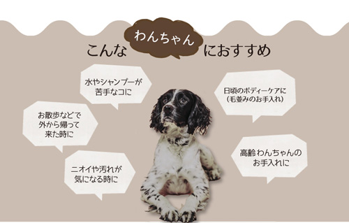 汚れや匂いを拭き取り、毛にツヤを与えてくれます。