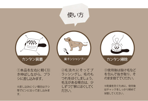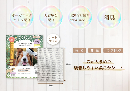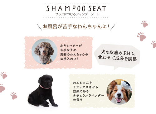 ブラシに装着してブラッシングしながらシャンプーができるシート。