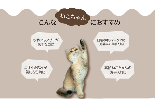 汚れや匂いを拭き取り、毛にツヤを与えてくれます。