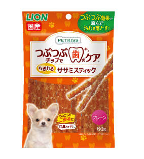 国産のササミジャーキーに牛皮のつぶつぶチップをトッピング。