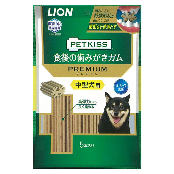 【PETKISS】ミルク味 食後の歯みがきガムプレミアム中型犬用5本