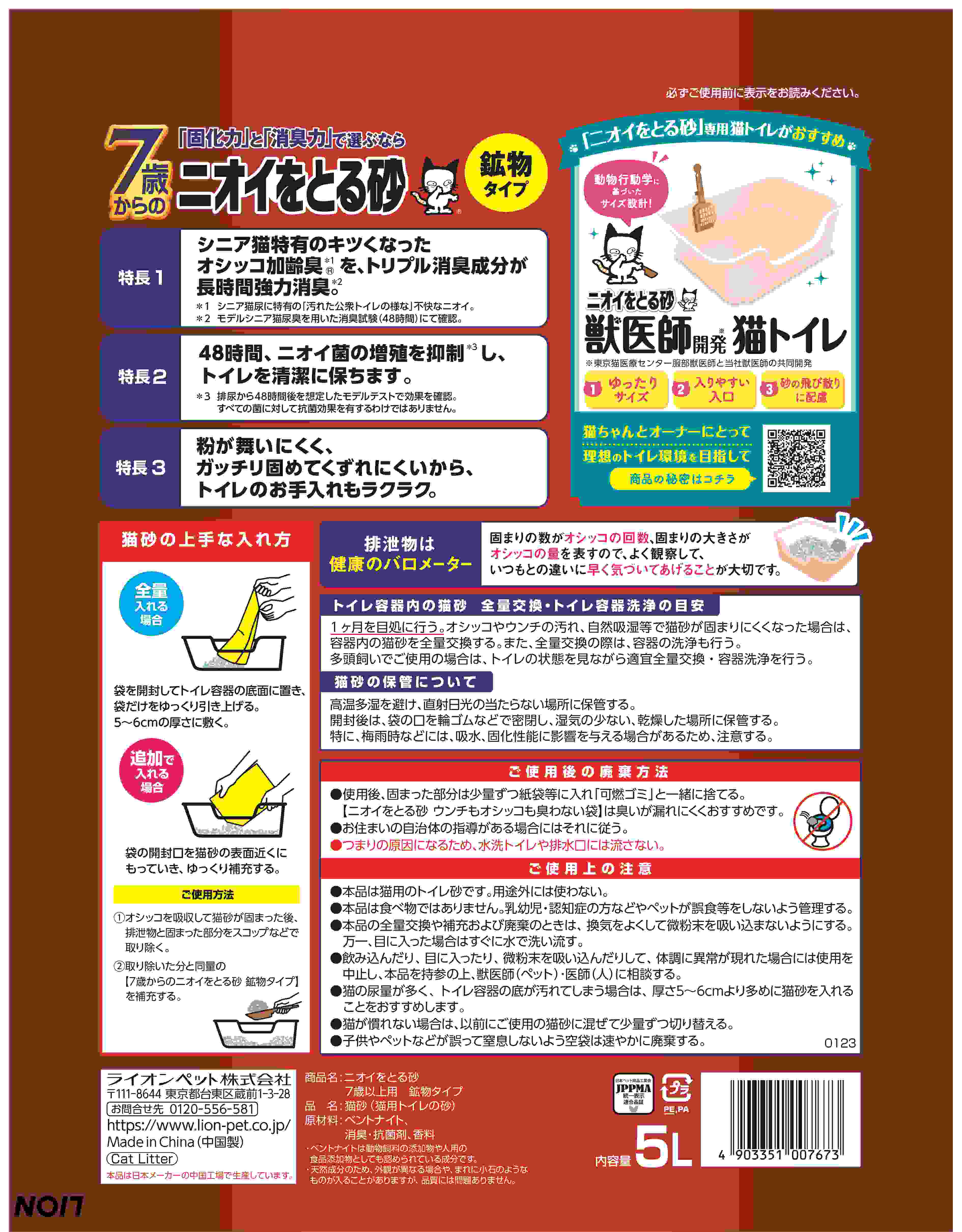 シニア猫特有のキツくなったオシッコ加齢臭Rを、トリプル消臭成分が長時間強力消臭*1。