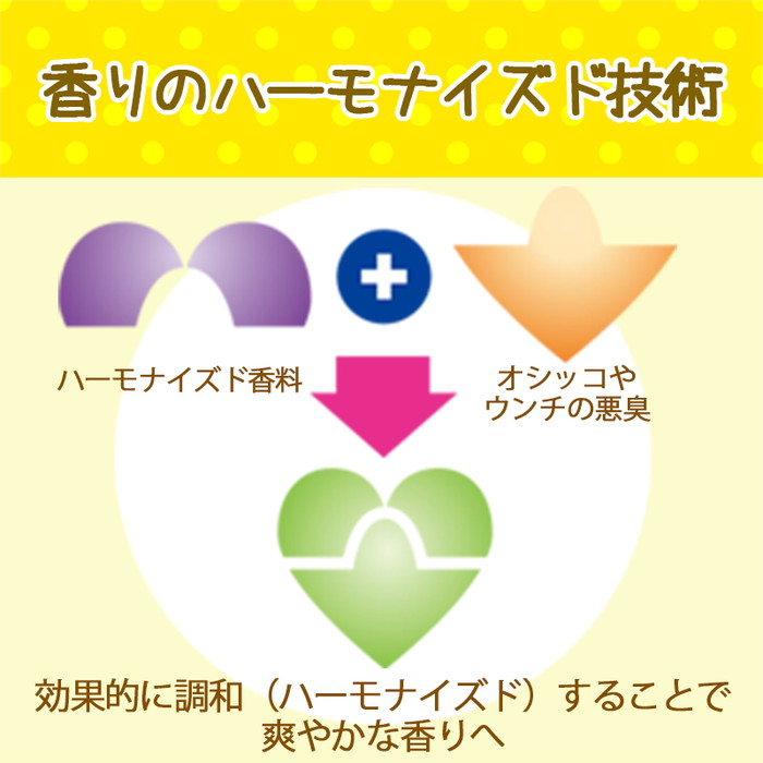 オシッコやウンチのイヤなニオイをさわやかな香りに変える独自のハーモナイズド技術を採用。