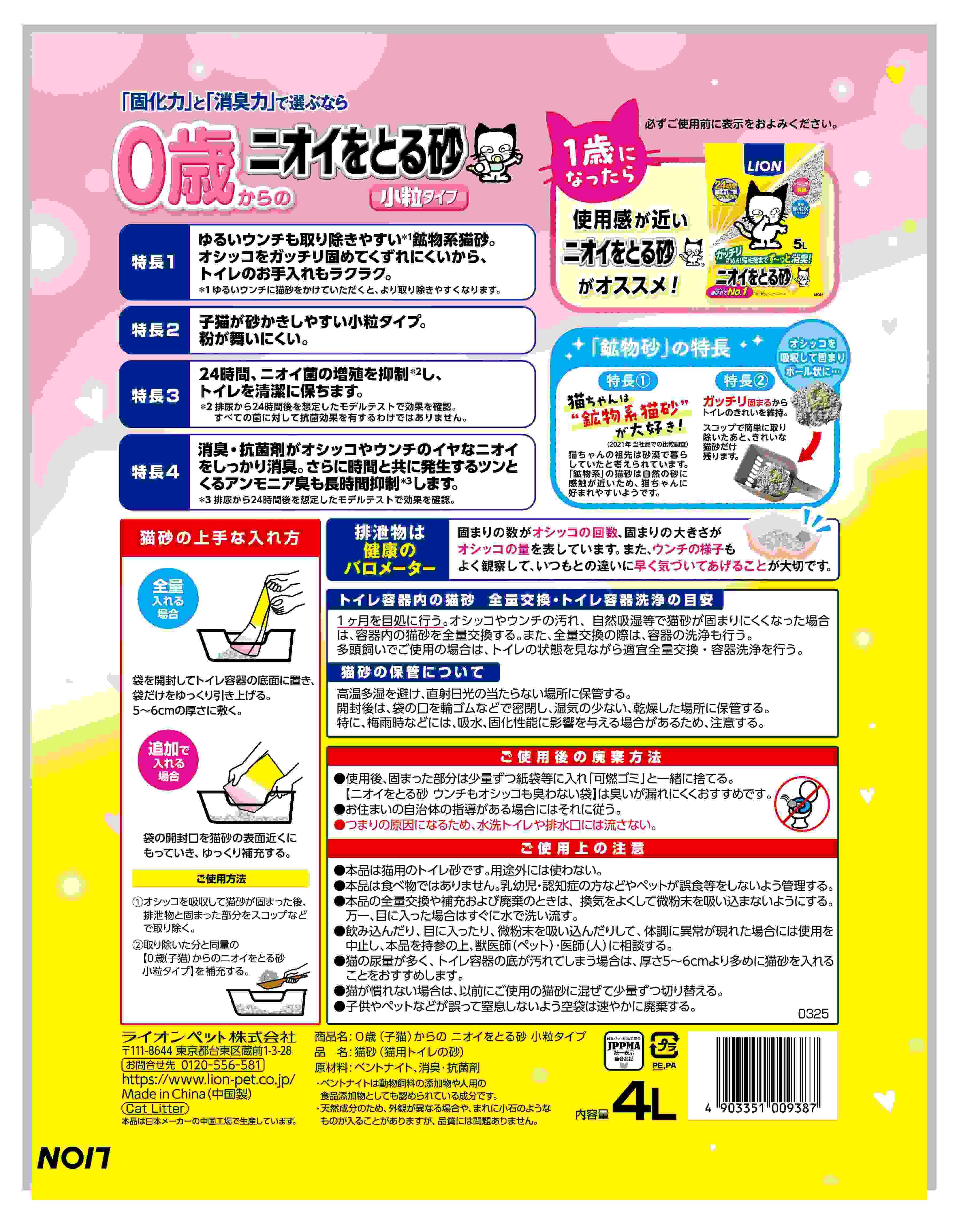 0歳(子猫)からのニオイをとる砂 小粒タイプ 4L