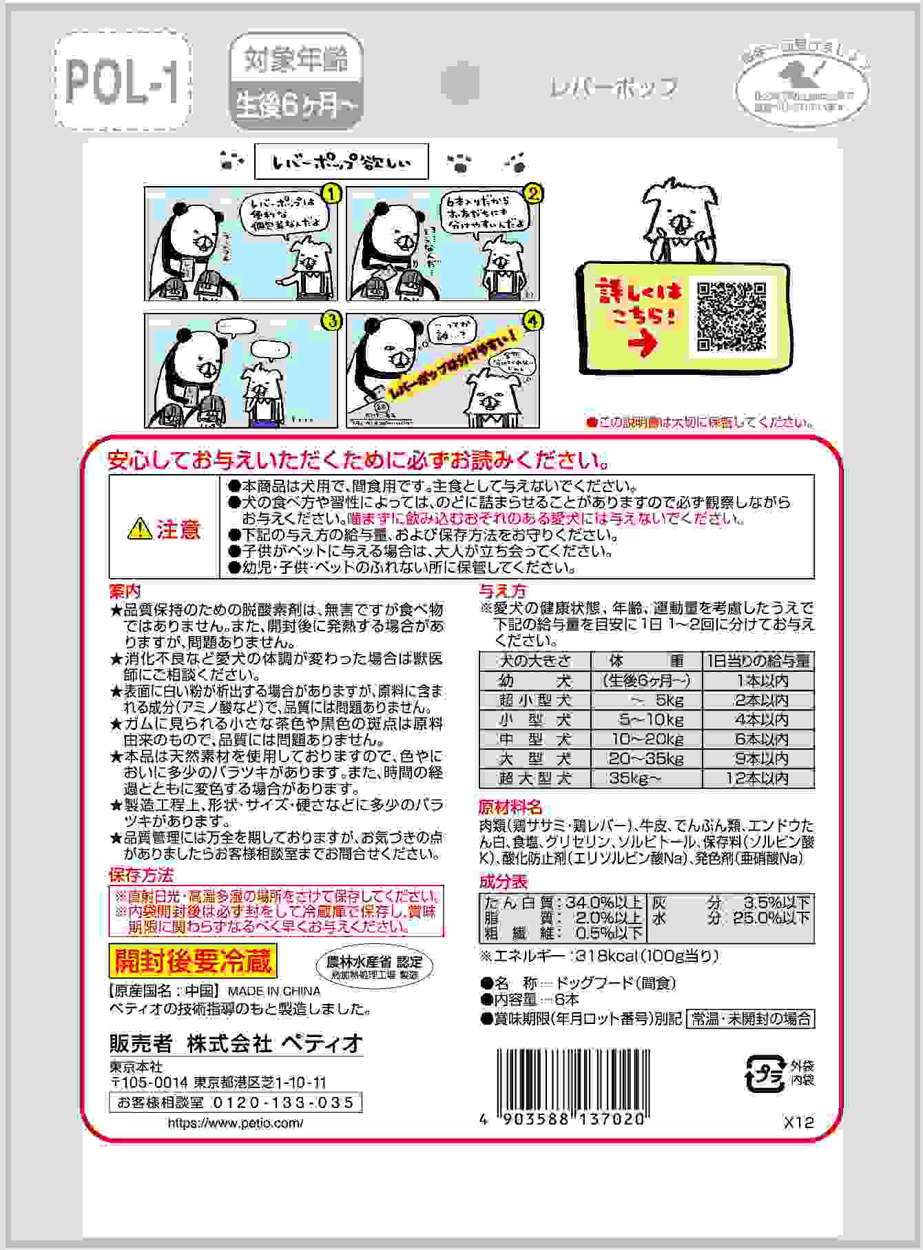 ●本商品は犬用で、間食用です。主食として与えないでください。●犬の食べ方や習性によっては、のどに詰まらせることがありますので必ず観察しながらお与えください。噛まずに飲み込むおそれのある愛犬には与えないでください。●別記の与え方の給与量、および保存方法をお守りください。●子供がペットに与える場合は、大人が立ち会ってください。●幼児・子供・ペットのふれない所に保管してください。
