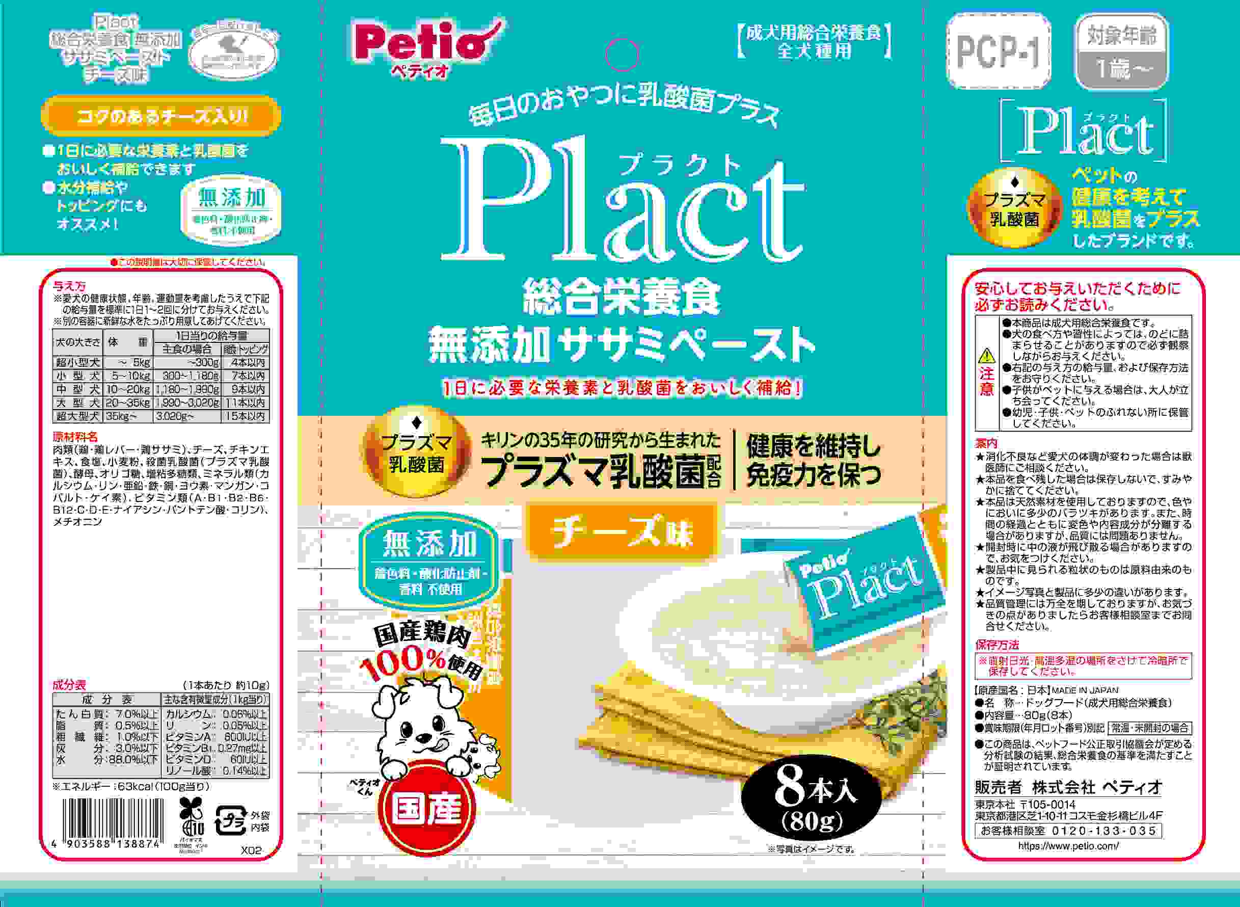 Plactはペットの健康を考えて乳酸菌をプラスしたブランドです。そのままでも、フードのトッピングとしても与えやすいなめらかペーストタイプ。国産鶏肉を100%使用!コクのあるチーズ入り。着色料・酸化防止剤・香料無添加。