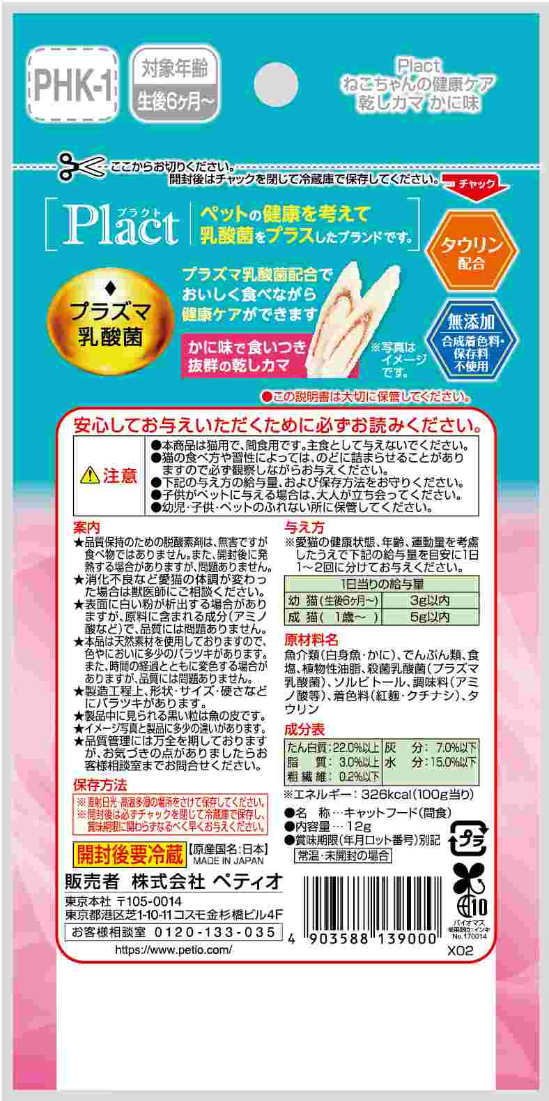 ペティオ プラクト ねこちゃんの 健康ケア乾しカマ かに味 12g