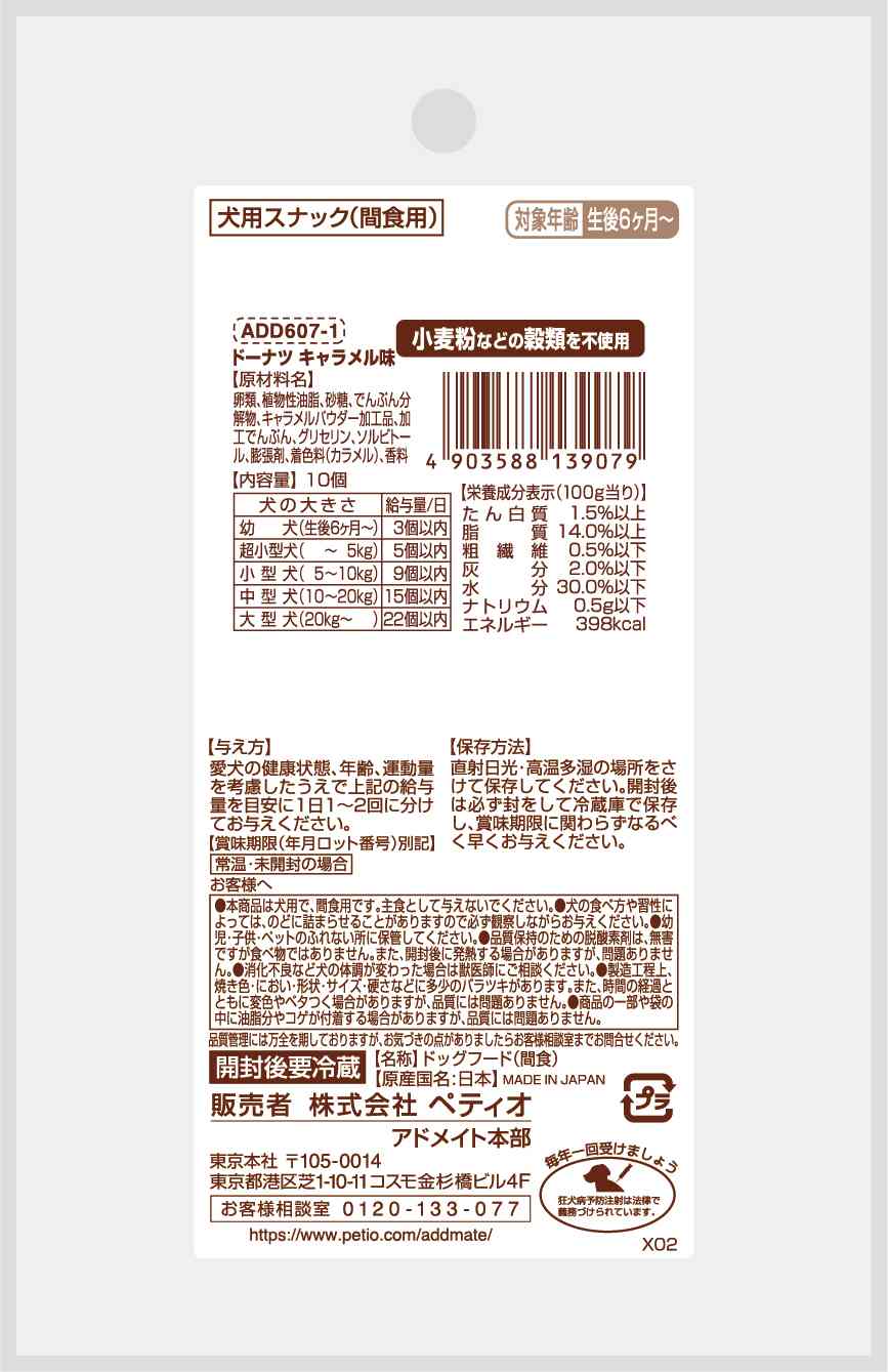 ●本商品は犬用で、間食用です。主食として与えないでください。●犬の食べ方や習性によっては、のどに詰まらせることがありますので必ず観察しながらお与えください。●幼児・子供・ペットのふれない所に保管してください。