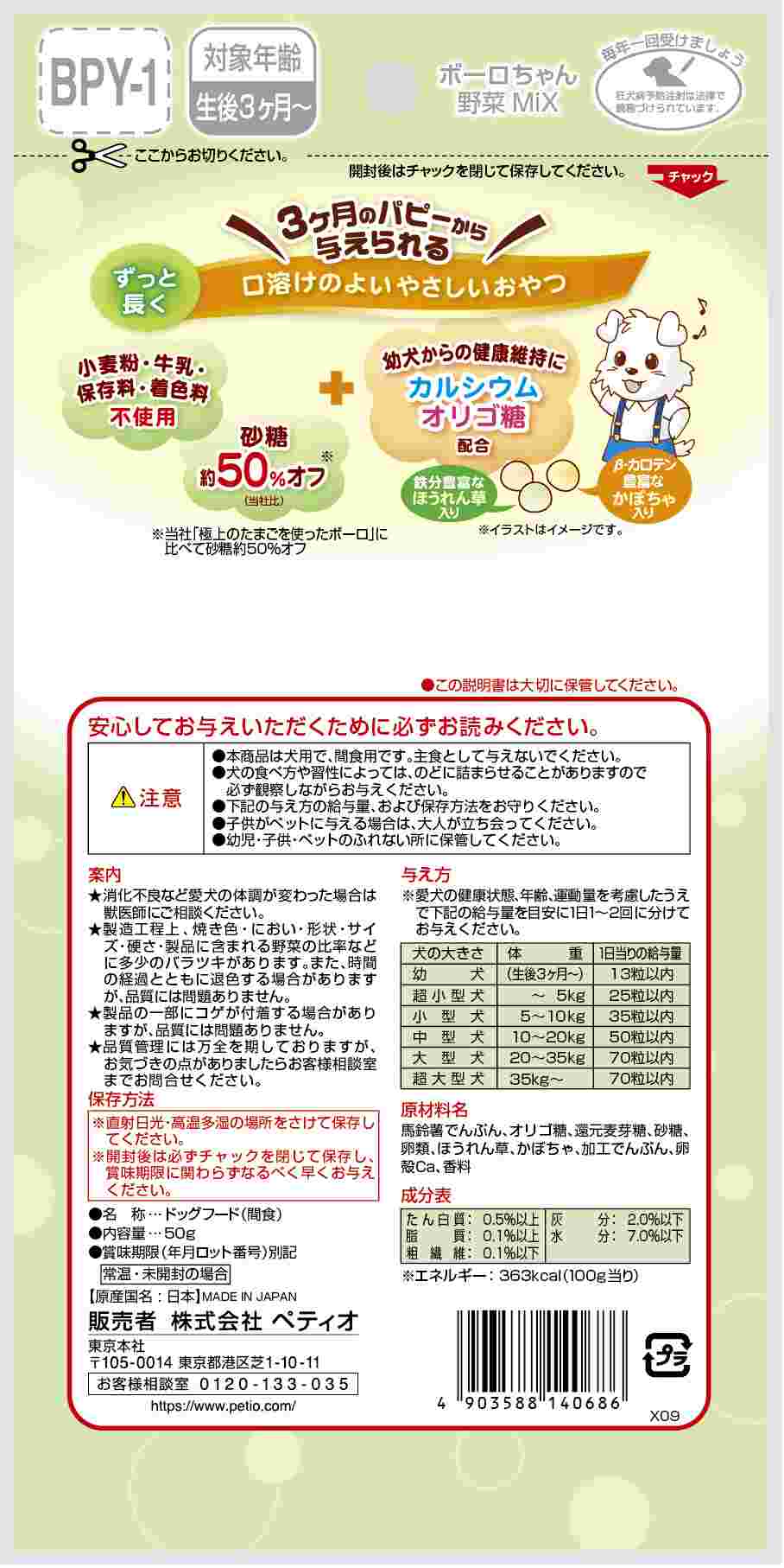 ペティオ 体にうれしい ボーロちゃん 野菜Mix 50g
