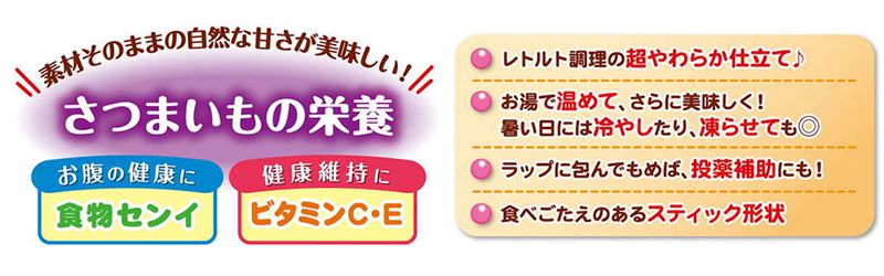 食物センイやビタミンC・Eなど栄養たっぷりのさつまいもをレトルト調理で超やわらかに仕上げました。