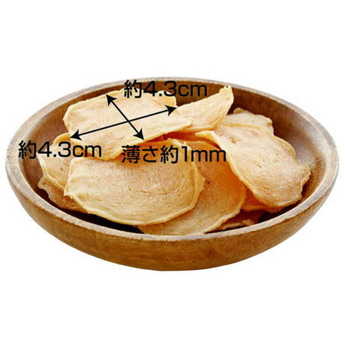食品添加物完全無添加、鶏ササミを100%使用しました。 パリッと食感でそのままでも、好みのサイズに割っても食べやすい極薄チップス。 食品添加物は一切使用せず、良質たん白質豊富な鶏ササミを100%使用しました。 パリッと食感でそのままでも、好みのサイズに割っても食べやすい極薄仕上げのササミチップス。 穀物不使用なので、穀物アレルギーのワンちゃんにも安心。農林水産省認定 鳥加熱処理工場製造。