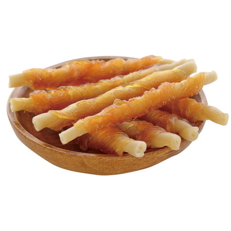 低脂肪・良質たん白質豊富なササミをやわらかく仕上げて、芯までおいしく食べられるやわらか弾力ガムに巻きました。