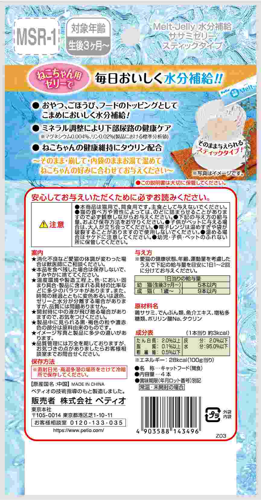 ペティオ メルトジュレ 水分補給 ササミゼリー スティックタイプ 4本